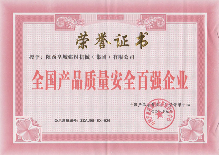 全國(guó)質(zhì)量安全百?gòu)?qiáng)企業(yè)